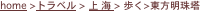 夕暮れを楽しみにしていましたが、曇りの日だったので 太陽の雲の中に入ってしまい、私たちは早々に降りてしまいました。 日が落ちてから、外灘の夜景を見にきました。ライトアップされていて美しい。 夜空も不思議な色に照らし出されていました。 それにしても、東京にも高いビルには展望台がありますが、 どんなに高いビルでも窓ガラスが汚れて、外が見にくいなんてことあまり思うんです。 気がつきませんでしたが、窓は、ピカピカにしているんだろうな、 すみずみまでいき届いているのってすばらしい、海を渡って来たら気がつきました。 ■上海市豊和路504弄2号/8:30〜21:00/入場料:40元〜100元(昇る高さで料金が異なります) |