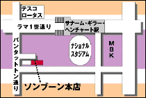 ソンブーン・建興酒家(本店) ヤシ蟹のカレー炒めがおいしくて 有名なソンブーン。 ぜひ本店にいかなくては!と地図を片手に タクシーに乗り込む。 ソンブーン本店の場所がわからない 運転手もいました。 残念!即タクシー乗り換え。 いってみたら、歩いても簡単にゆけること がわかりました。 BTSサナーム・ギラー・ヘンチャート駅から 徒歩10分ぐらい。 近くには、地元系スーパー「テスコ・ロータス」 があるので、 帰りに散歩&地元系スーパーでお買い物に ちょうどいいです。 バンタットトン通りを入ると ひときわ大きな看板が目に飛び込んできますので すぐにわかります。 小さな路地には、ソンブーンのお客さんの車が 何台も停まっていました。