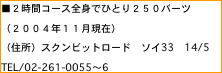 日をあらためて、スクンビットの直営サロンにいきました。 こちらでは、日本語をはなせるスタッフが受付 にいらっしゃいました。 受付では、必ず予約してください!とのこと。 (駐在されている日本人の方がおおいのでしょうか?) とっても混雑していて予約なしだとしばらく待たないと なりませんでした。